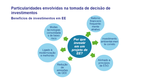 Considerando o ganho financeiro, especialistas do PotencializEE recomendam que PMEs interessadas na Eficiência Energética encarem sua implementação como um investimento que pode dar muito mais retorno, além da economia financeira e energética. Também são vantagens da EE o alinhamento aos princípios ESG pelas empresas, a modernização da produção e, ainda, a melhoria nas condições de trabalho para os funcionários.