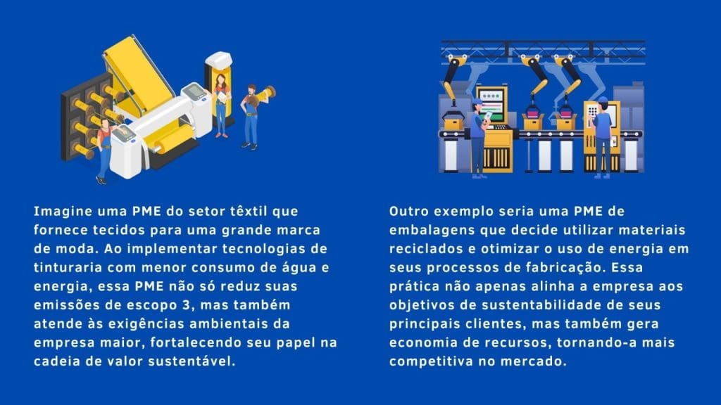 - Atração de clientes e parceiros sustentáveis: ao reduzir suas emissões de escopo 3, as PMEs podem atrair clientes e parceiros que valorizam fornecedores ambientalmente responsáveis.