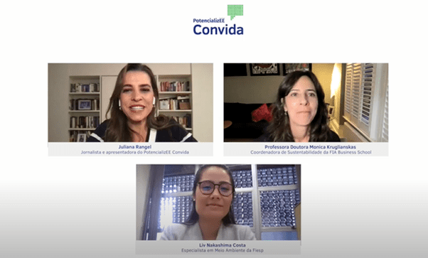Ao lado de Liv Nakashima Costa, especialista em Meio Ambiente da Fiesp, a professora doutora participou do 7º episódio PotencializEE Convida, programa apresentado pela jornalista Juliana Rangel. Com o tema “ESG nas indústrias paulistas”, o bate-papo já está disponível no YouTube, no canal do Programa PotencializEE, liderado pelo Ministério de Minas e Energia (MME) e coordenado pela GIZ (Deutsche Gesellschaft für Internationale Zusammenarbeit), Agência Alemã de Cooperação Internacional.